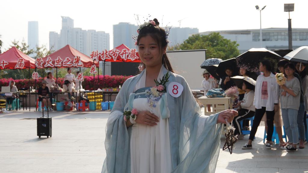 院长致辞完毕后, “花样年华”插花比赛正式开始。本次插花比赛以“人体花艺”为主题,以人为载体、完成精美的花艺作品。11支参赛队伍构思精巧,在模特身上用各种鲜花进行搭配装饰。模特们在赛场上自信展现着成品,传达出不一样的生活情趣,颇获掌声。