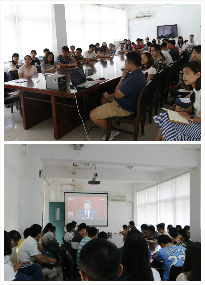 上午8:30分,我院开放了学院会议室E4-410,作为师生员工集中观看十九大开幕式的场所,并在前期进行了广泛的宣传。学院党委委员、师生党员、团员团干、师生群众根据自己的上课时间安排,自觉来到学院会议室观看十九大开幕式。